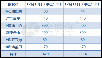 目前,华东区域上海五号沟、新奥舟山LNG接收站满负荷运行,中海油北仑高负荷运行,而中海油莆田LNG目前限量出货中,日销售170车。据金联创估计,今日华东市场较昨日相比仍将有300多车的缺口,加之市场运力紧张,个别贸易商哄抬价格明显,预计12月12日将大幅上涨。