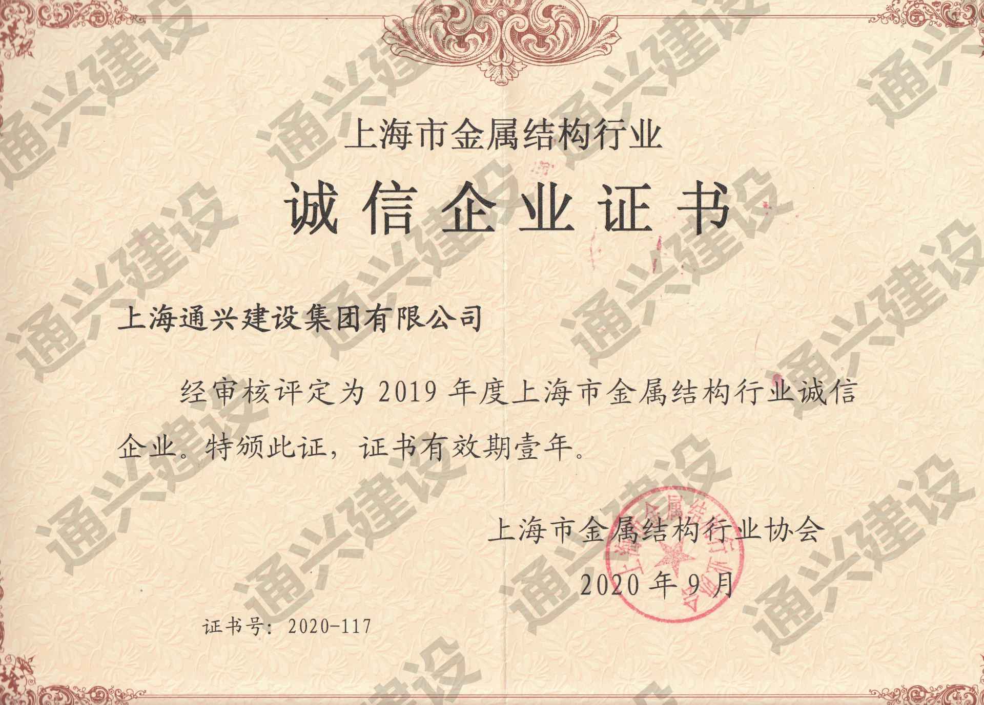 2019年度诚信企业证书